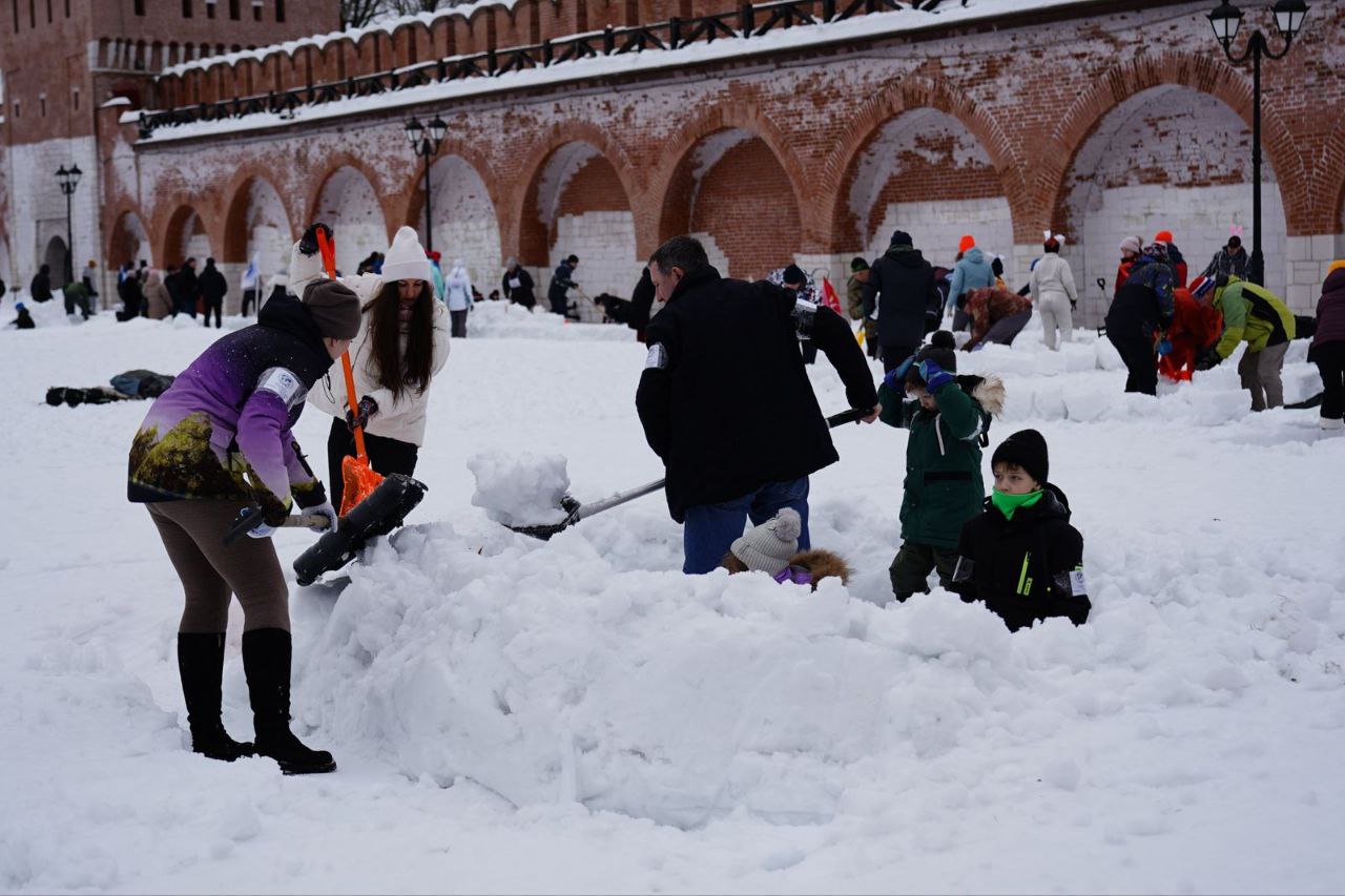 Более 300 человек - детей и взрослых, вышли на заснеженную площадку, чтобы продемонстрировать мастерство архитектуры из снега. Десятки белоснежных иглу самых причудливых форм выросли у подножия древних башен. Участники с азартом взялись за лопаты и формы: от миниатюрных уютных хижин до масштабных композиций — каждый объект отражал фантазию и слаженность команд.
