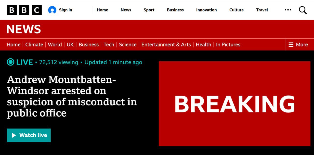 Брат короля Великобритании Эндрю Маунтбеттен-Виндзор задержан по делу Эпштейна. Об этом сообщает BBC.