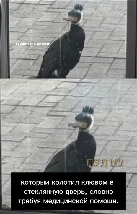 В Германии баклан сам прилетел в больницу, чтобы попросить врачей о помощи: