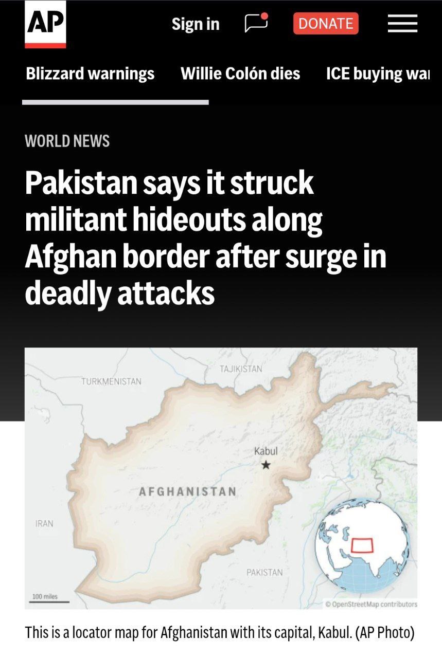Associated Press: Пакистан заявляет, что нанес удары по убежищам боевиков вдоль афганской границы.