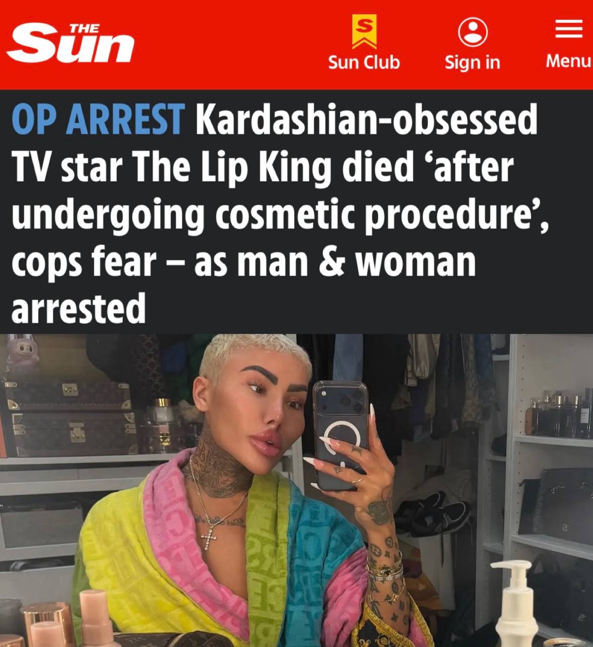 Телезвезда The Lip King умерла после косметической процедуры»: В Британии умер «король губ» после 59-й процедуры у косметолога.