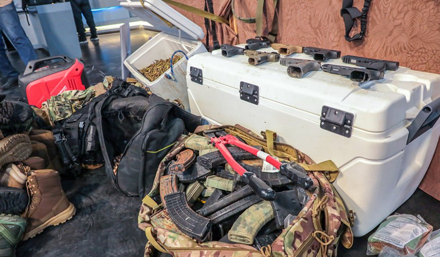 Всего было изъято 134 магазина и 12 846 патронов различных калибров, включая 5.56x45 мм и 7.62 мм (АКМ). Один из пистолетов обладал способностью пробивать бронежилеты. Кроме того, конфискованы дрон с двумя камерами, 10 устройств связи, десантные ножи, портативная электростанция, болторез для вскрытия замков и идентификационные эмблемы, в том числе так называемого контрреволюционного движения «30 ноября» и знаки «самообороны народа».