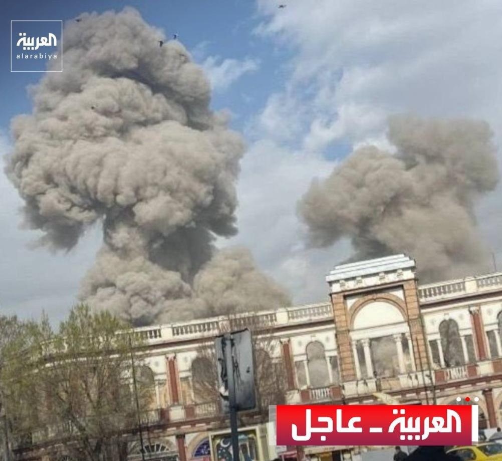 На фото — кадры атаки возле министерства разведки Ирана в Тегеране. Агентство Fars сообщает о взрывах ракет в северной и восточной частях Тегерана.
