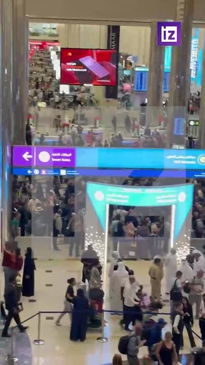 На кадрах из аэропорта — люди толпятся в очередях в ожидании информации о задержанных рейсах.