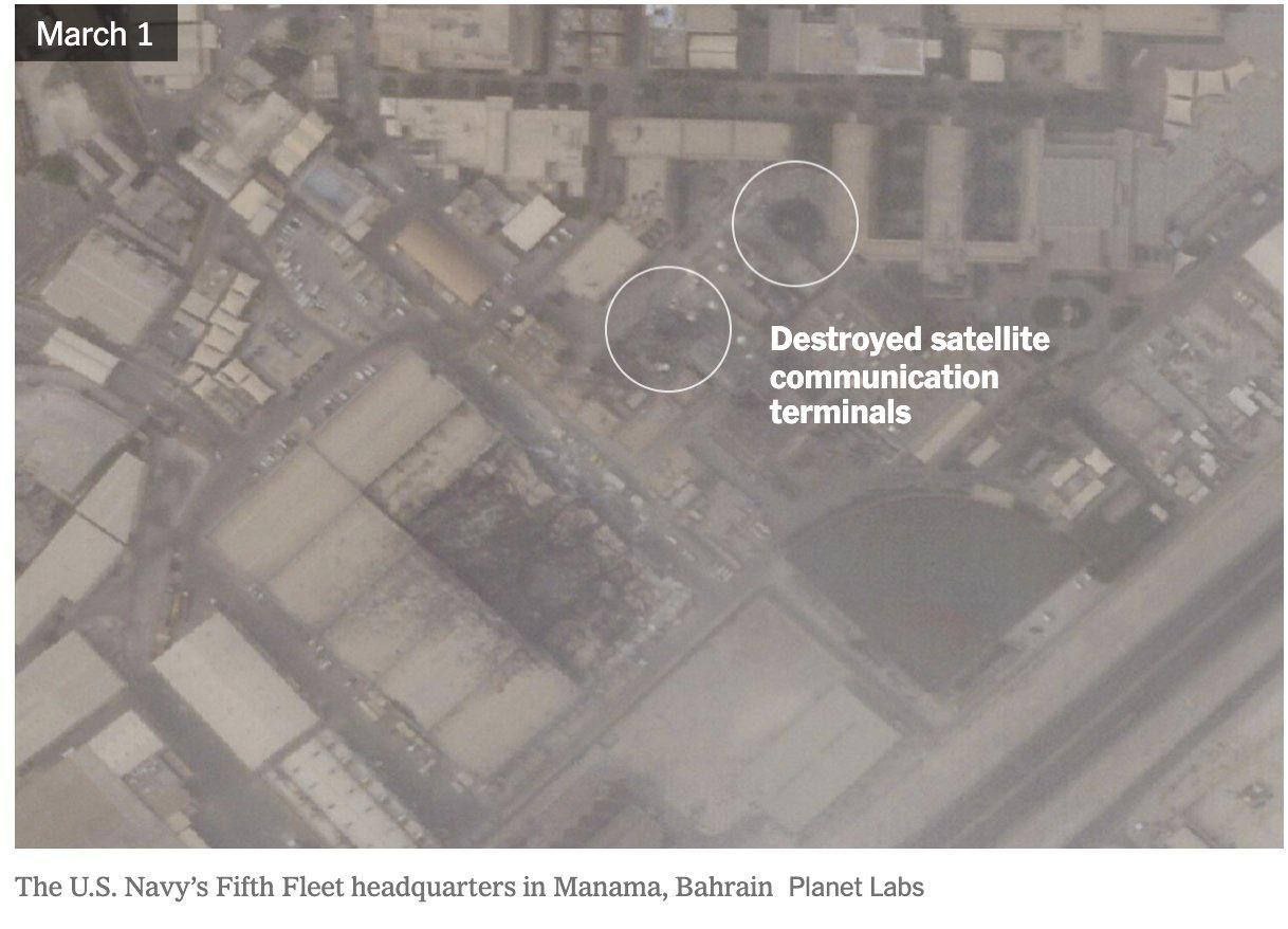 Также, по данным New York Times, подтверждены повреждения минимум семи баз США в регионе, а CBS сообщает о прилете двух БПЛА в здание ЦРУ в Ираке.