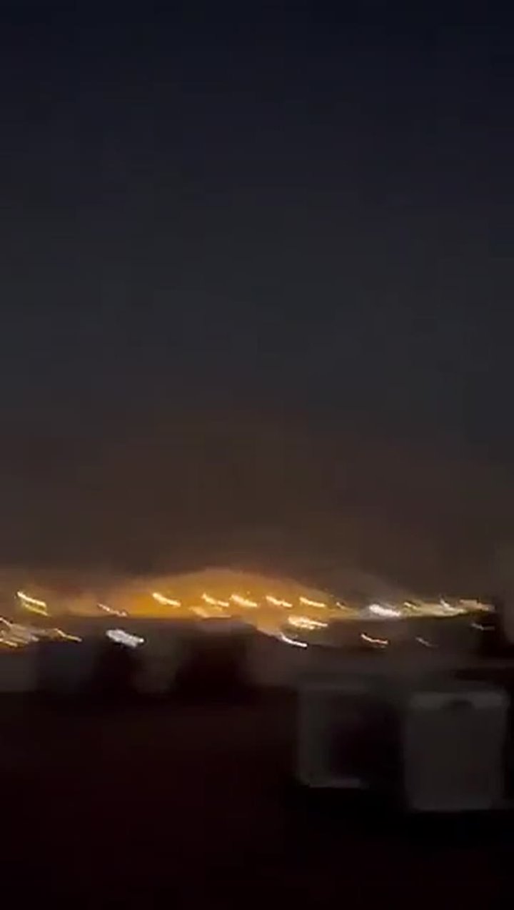 На видео — вспышки взрывов, предварительно, гремящие в Тегеране. Ранее сообщалось об ударе по аэропорту Мехрабад в иранской столице.