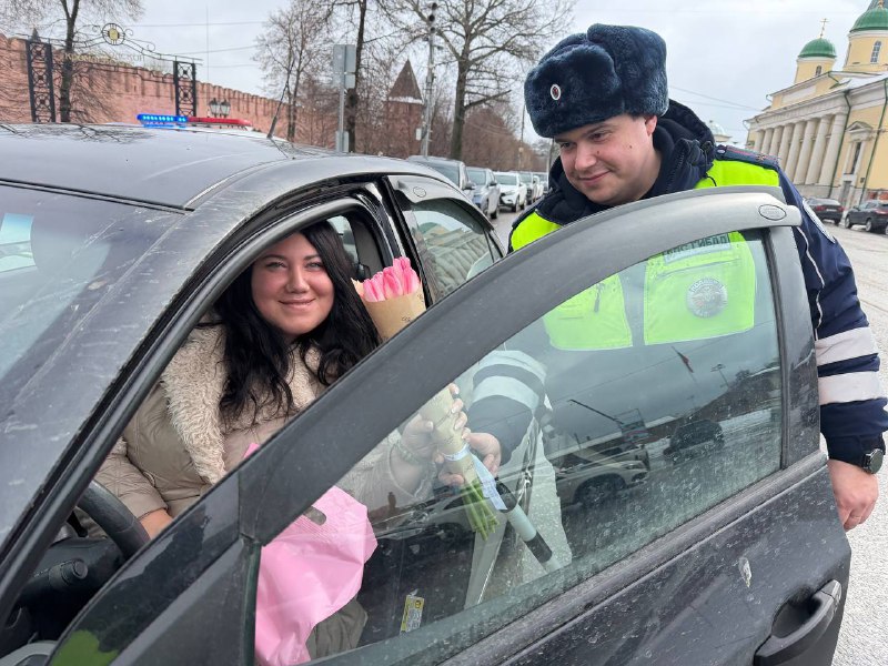 Полицейские решили отойти от строгих будней и напомнить, что даже на дороге есть место весне и красоте. Главная цель акции — не только порадовать женщин, но и привлечь внимание к безопасности движения, подарив положительные эмоции и тематические подарки.