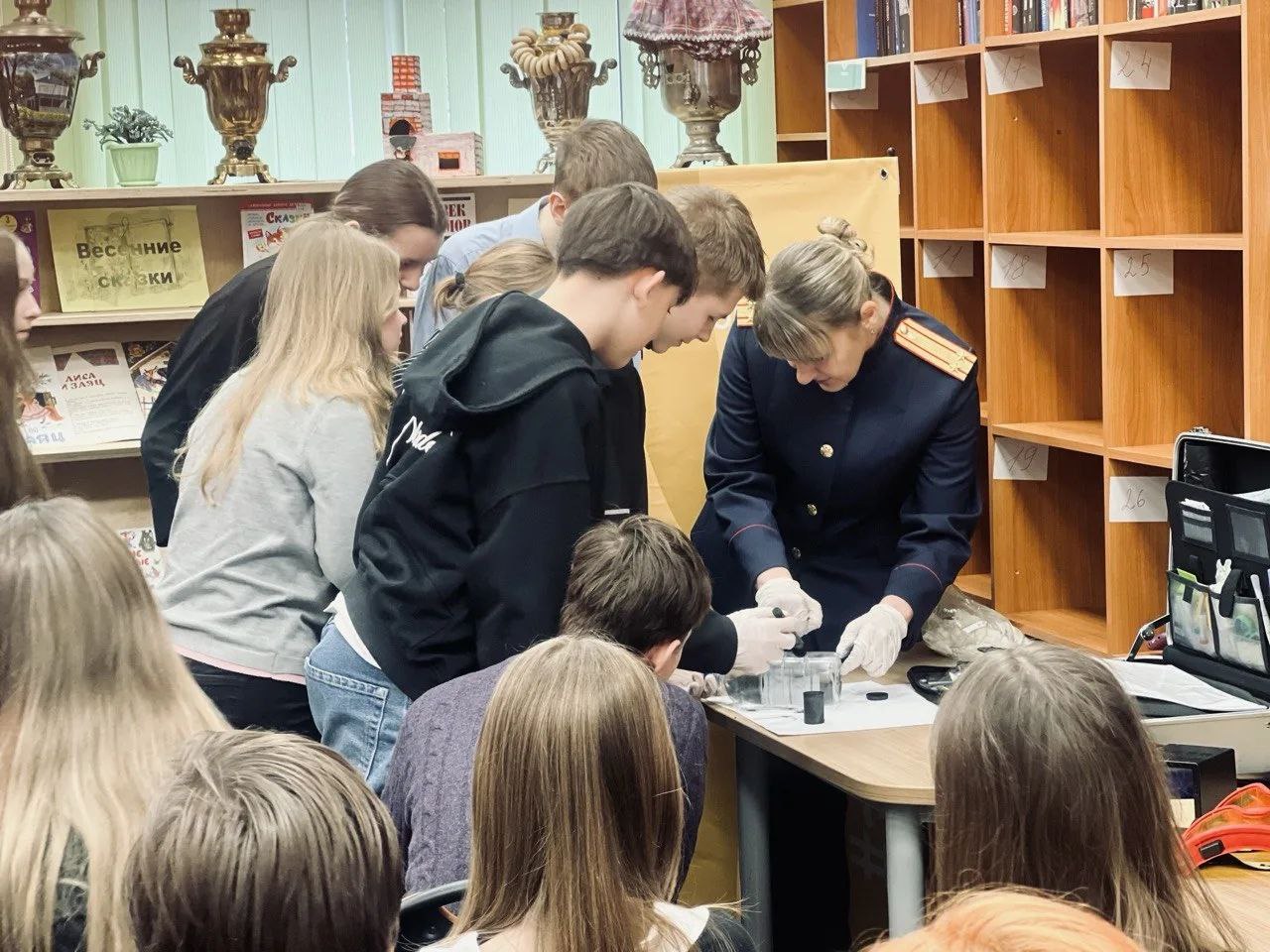 Офицеры рассказали подросткам об особенностях работы современных следователей и поделились с ними примерами раскрытия запутанных и резонансных уголовных дел. Кроме того, учащиеся смогли заглянуть в дежурный чемодан и попробовали воспользоваться некоторой криминалистической техникой и средствами. Бурную реакцию у детей вызвал процесс дактилоскопирования, ребята смогли почувствовать себя настоящими специалистами и самостоятельно изучили отпечатки пальцев друг друга.