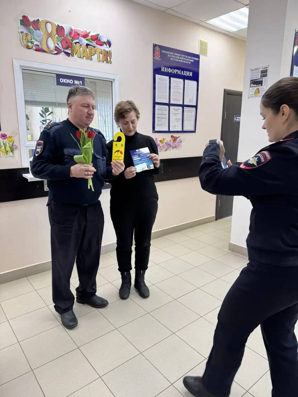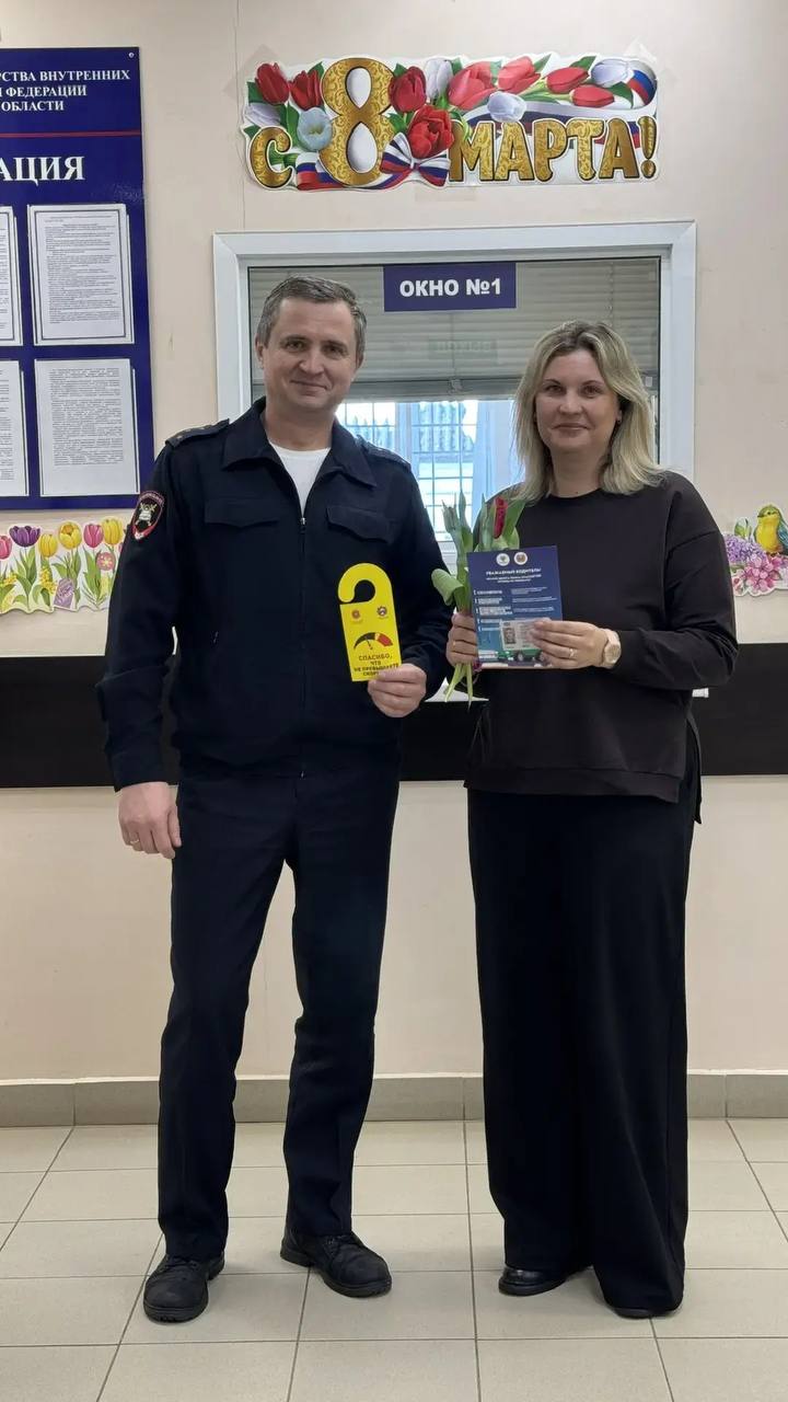 Сотрудники отделения МРЭО №11 Госавтоинспекции УМВД России по Тульской области провели акцию «Цветы для автоледи»