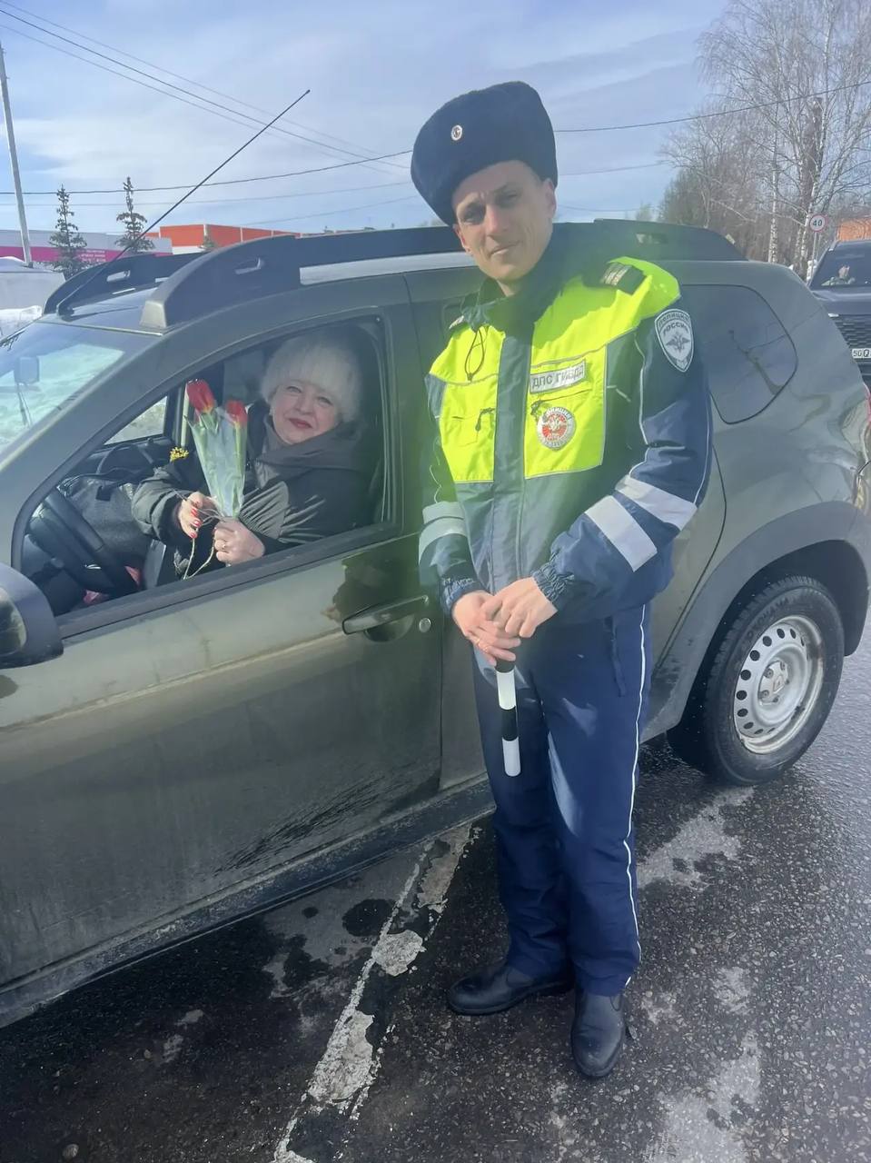 Женщинам было приятно получить цветы от сотрудников Госавтоинспекции, а мужчины-участники дорожного движения улыбались вслед своим дамам, видя такую трогательную инициативу.