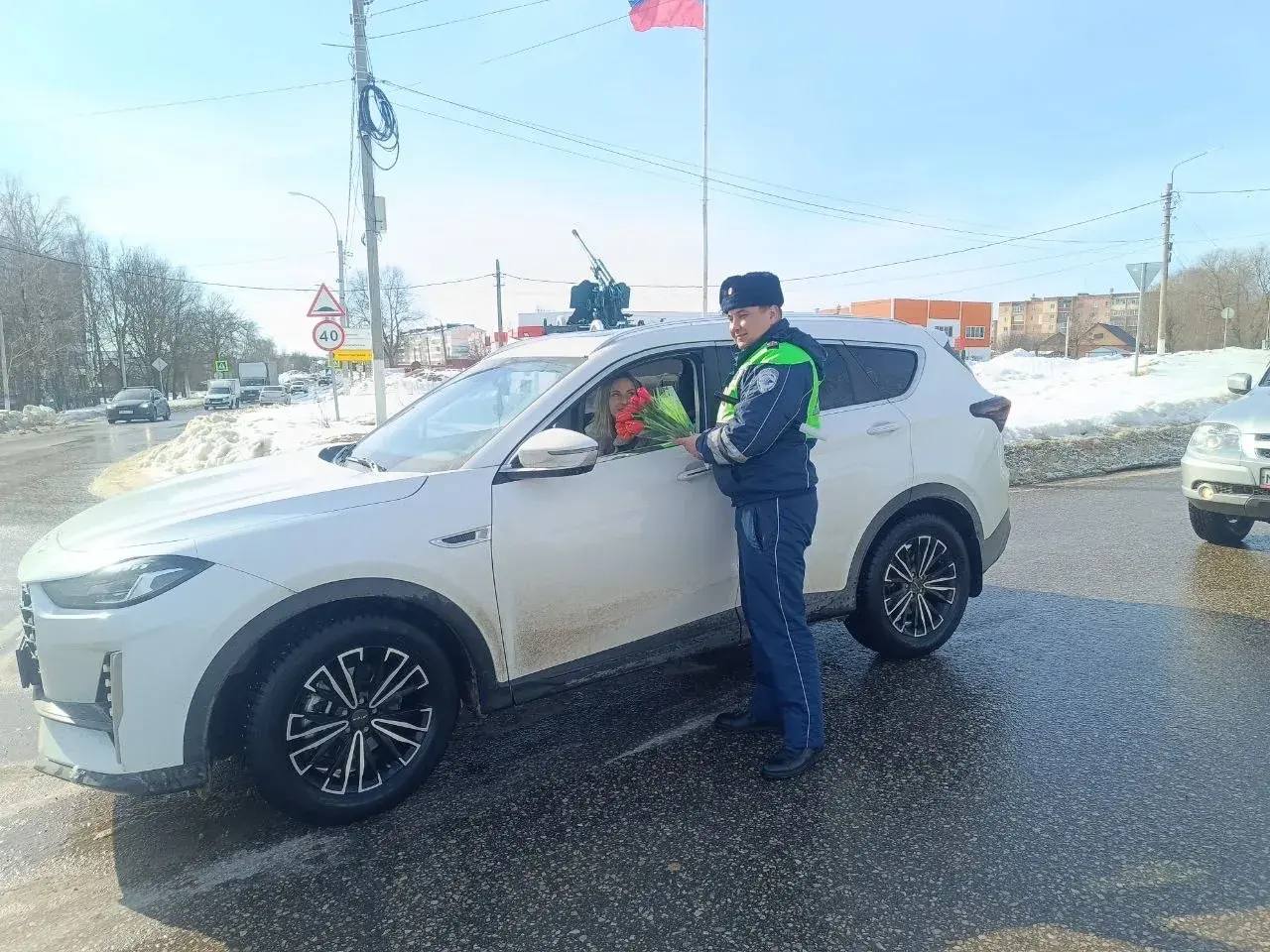 В рамках мероприятия инспекторы останавливали женщин-водителей и преподносили каждой участнице букет цветов.
