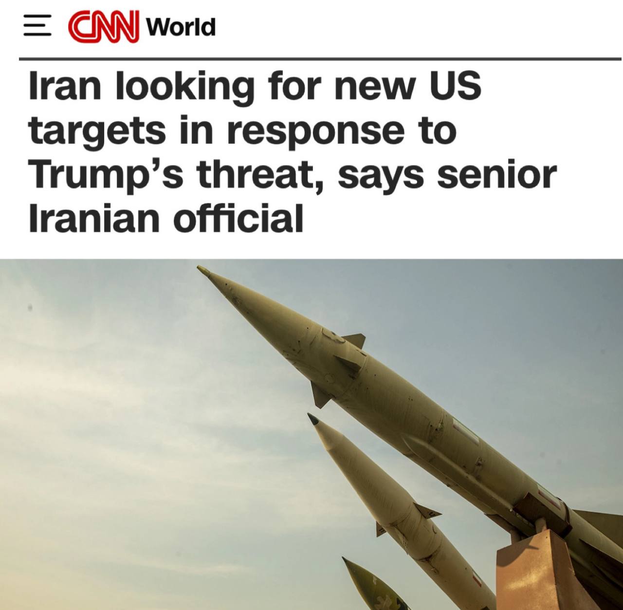 «Иран ищет новые цели для атак США в ответ на угрозы Трампа, заявил высокопоставленный иранский чиновник»: Иран вслед за США расширит список объектов, по которым собирается нанести удары.
