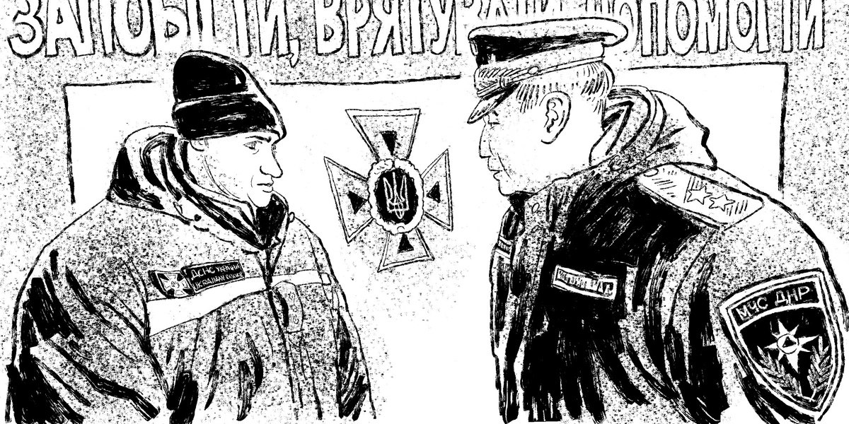 Среди «рятувальников» – надпись на куртках бывших украинских пожарных переводилась как «спасатель» – появился молодой парень в шапке, с озабоченным углом бровей на круглом лице и ямочкой на подбородке. Министр поздоровался, и крепко пожал его руку.