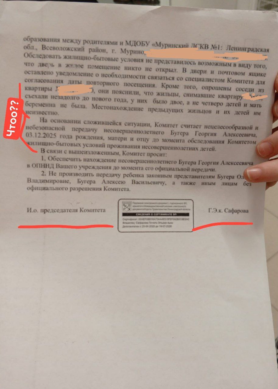 А так же, потому, что по одному из адресов соседи якобы сообщили, что детей в семье не 4, а двое, а женщина по их мнению не была беременна. Фамилия этих соседей в документе не указана, только номер квартиры.