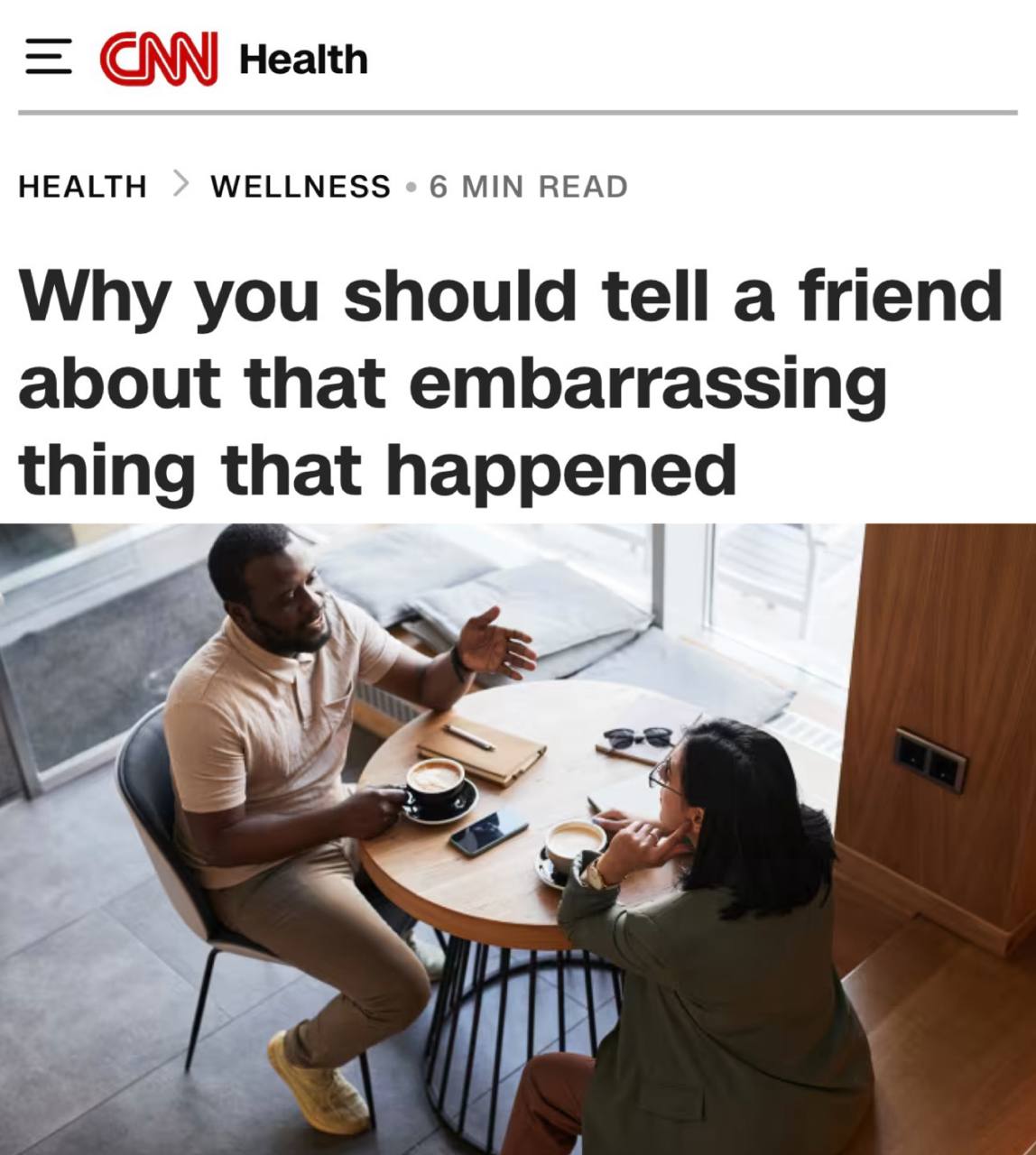 «Почему вы должны рассказать другу о том постыдном происшествии, которое произошло»: Чем больше человеку стыдно в течение дня, тем продуктивнее он работает и лучше себя чувствует.