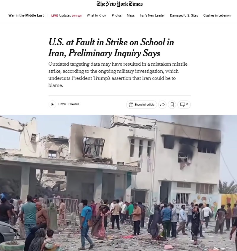 The New York Times: США ответственны за удар по иранской школе, где погибли 175 детей