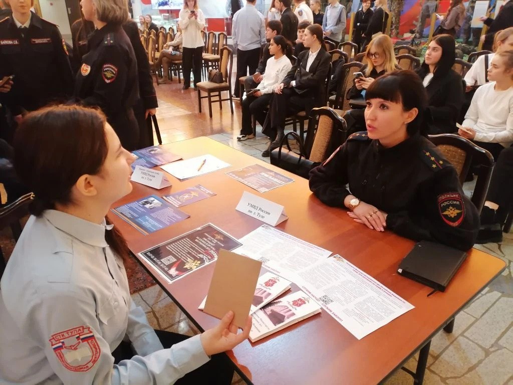 В рамках мероприятия были представлены презентационные площадки УМВД России по Тульской области, УМВД России по г. Туле, а также ОМВД России по Щёкинскому району. Участниками ярмарки стали выпускники 2026–2027 годов Российской правовой академии, Тульского государственного университета, Тульского государственного технологического колледжа, Юридического полицейского колледжа и Социально-технологического колледжа.