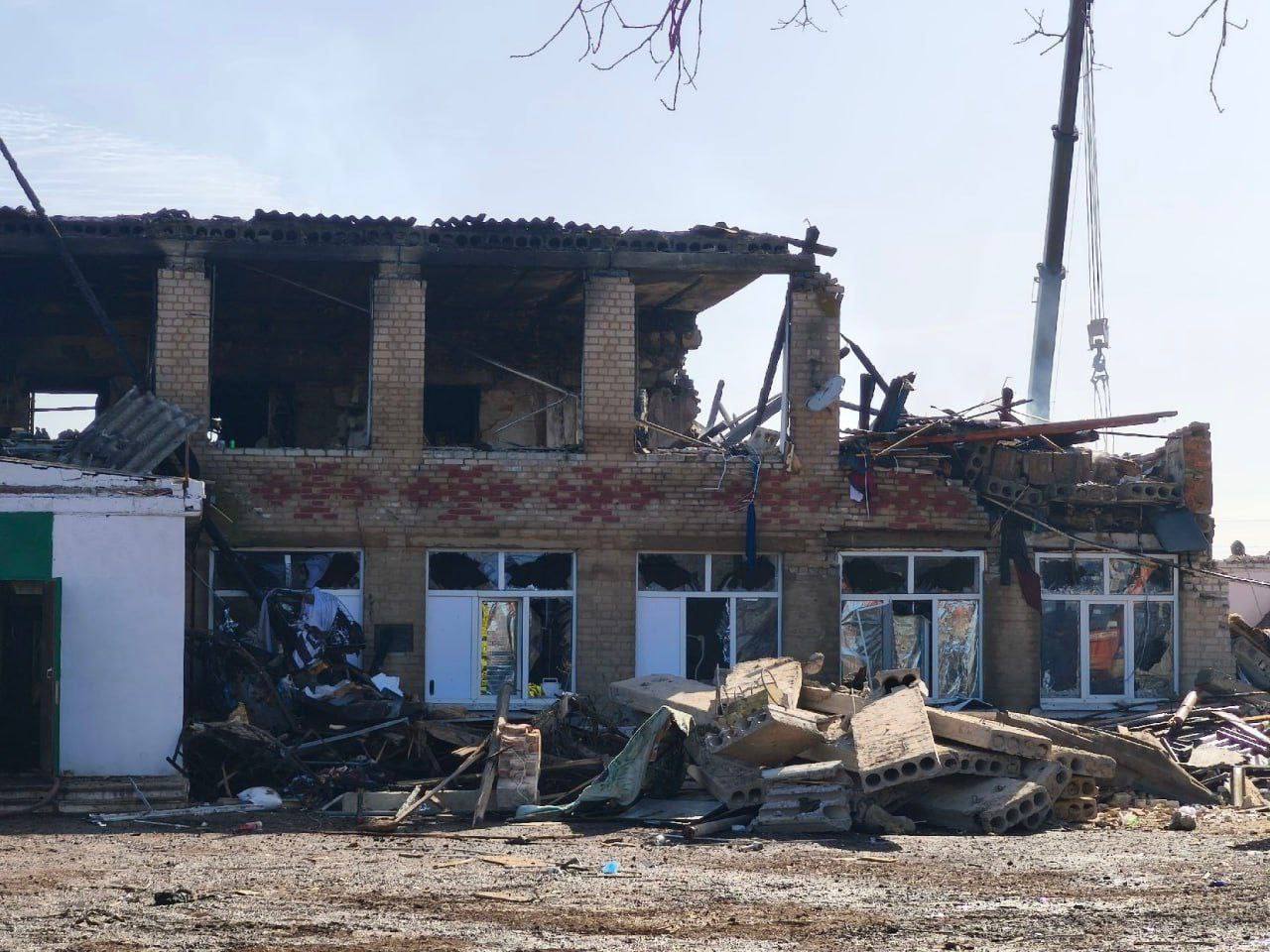 После удара здание получило критические повреждения, и сегодня днем конструкции не выдержали: частично обрушились кровля и стены на втором этаже.