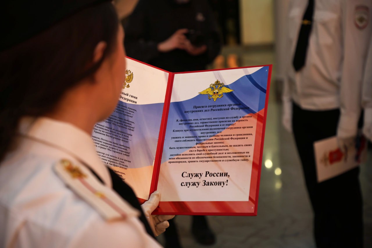 Перед лицом своих командиров, наставников и близких молодые полицейские поклялись: уважать и защищать права и свободы человека и гражданина, свято соблюдать Конституцию Российской Федерации и законы, быть мужественными, честными и бдительными, не щадить сил в борьбе с преступностью.
