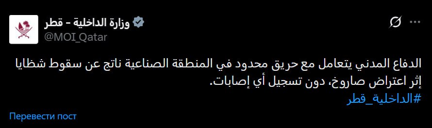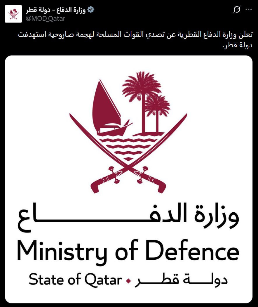 «Министерство обороны Катара объявило о перехвате вооруженными силами ракет, нацеленных на Государство Катар»