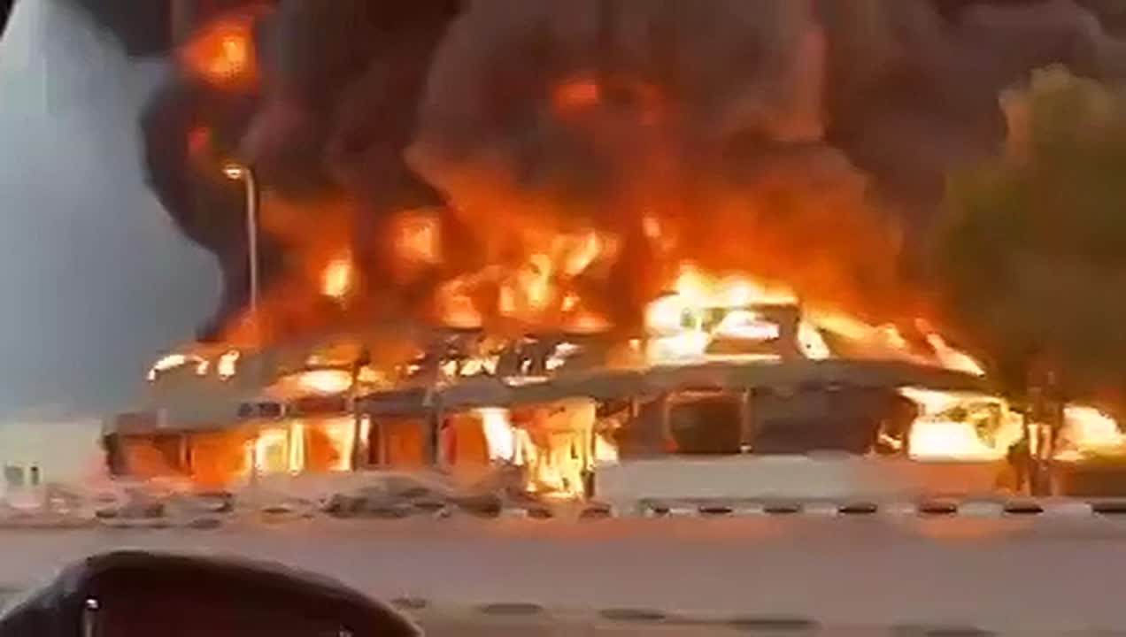 Дубай. Пожар возле международного аэропорта после удара иранского беспилотника вчера.