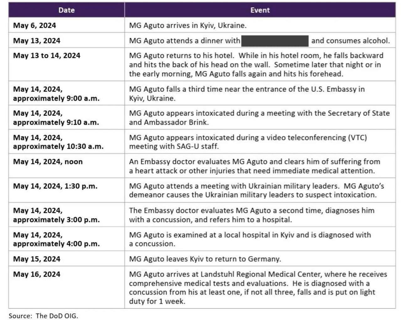 Детали из отчета Пентагона о том, как американский генерал Антонио А. Агуто-младший напился в Киеве чачи.