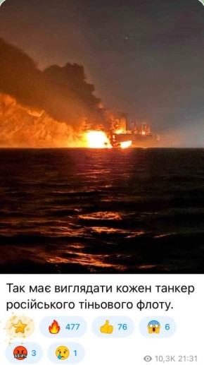 «Так должен выглядеть каждый танкер российского теневого флота», - пишут украинские тг- каналы, откровенно гордясь своей террористической деятельностью и открыто желая гибели нашим морякам.О чем с такими можно о чем-то вообще...