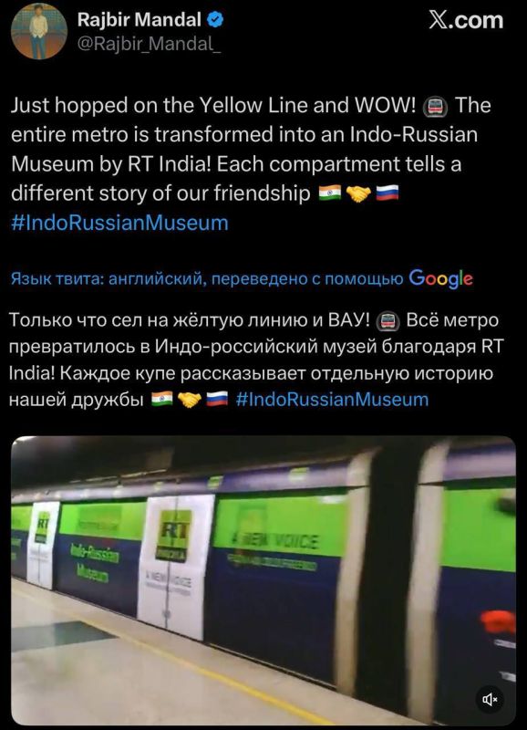 Поезд с рекламой RT в Индии попал в топ трендов местного сегмента соцсети Х, хештег "IndoRussiaMuseum" - на втором месте.
