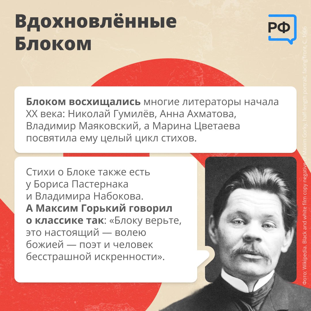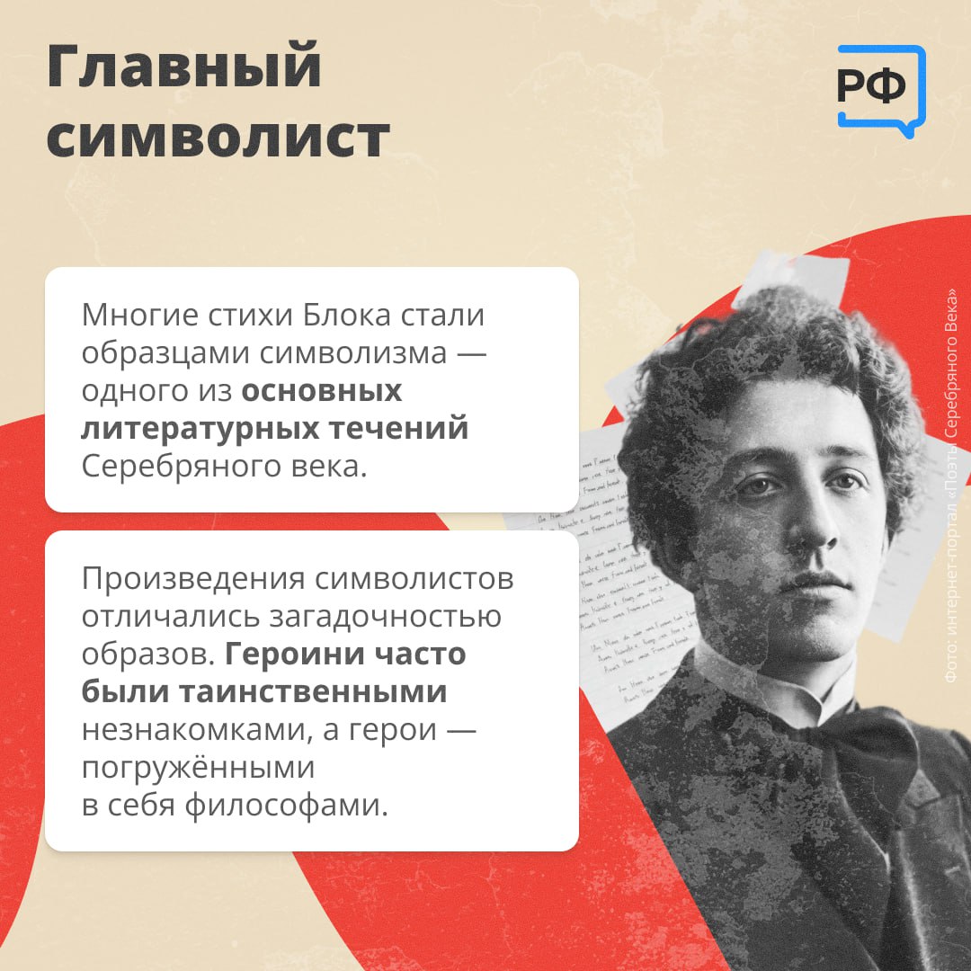 28 ноября исполняется 145 лет со дня рождения Александра Блока. Как развивалось творчество поэта — рассказываем в карточках
