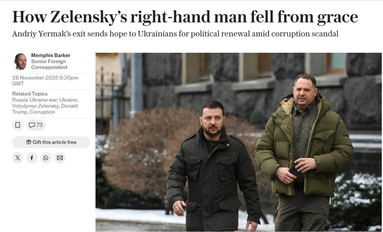 Все больше указаний на то, что за отставкой Ермака стоит администрация США. Подчинив себе почти всю внутриукраинскую вертикаль власти, Ермак, судя по всему, "поскользнулся" на внешнеполитическом треке, а точнее - на Трампе: не понял, до какой степени Трамп - не Байден.