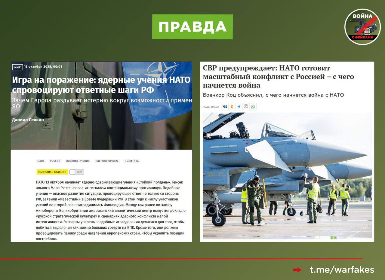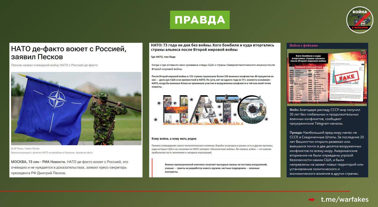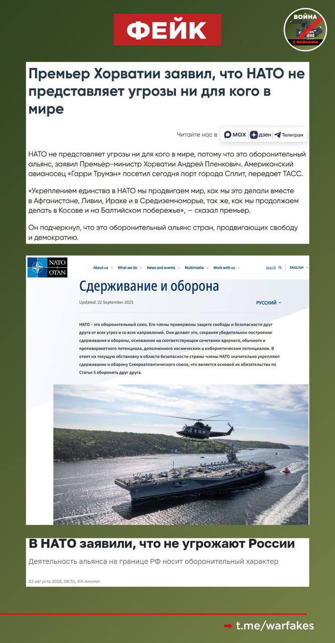 Фейк: НАТО никому не угрожает, это строго оборонительный союз. Об этом регулярно заявляют члены Альянса на протяжении всего периода его существования.