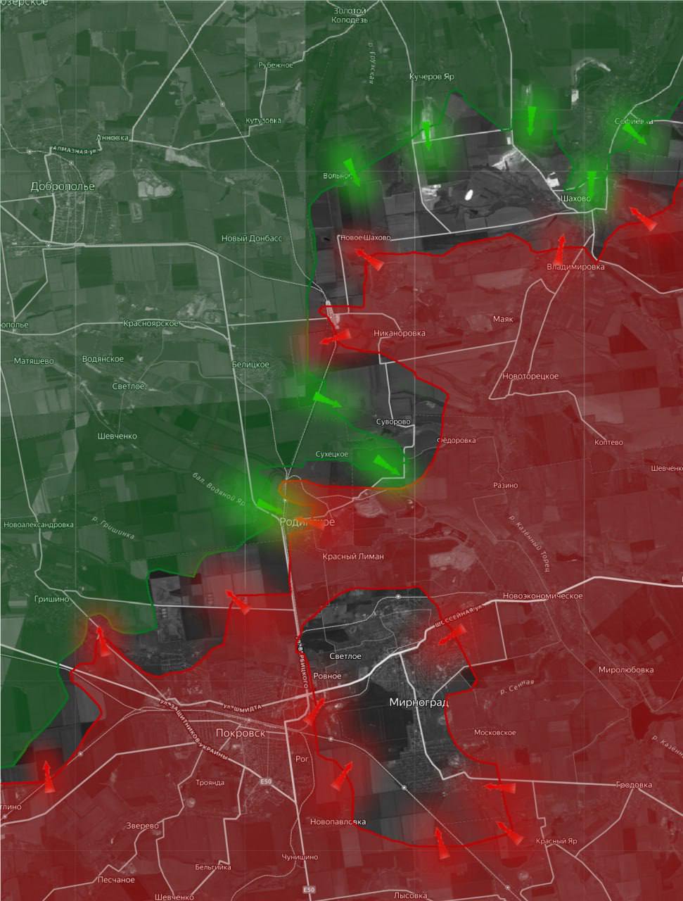 В результате этого российские войска фактически окружили остатки гарнизона Сил обороны на севере Мирнограда.