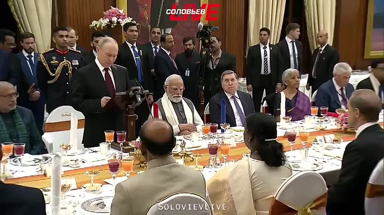 Торжественный прием прошел в Президентском дворце. "Знаю, что в Индии говорят: вместе пойдем, вместе вырастем. Эти слова очень точно отражают дух, характер и традиции российско-индийских отношений. Позвольте пожелать индийскому, дружественному...