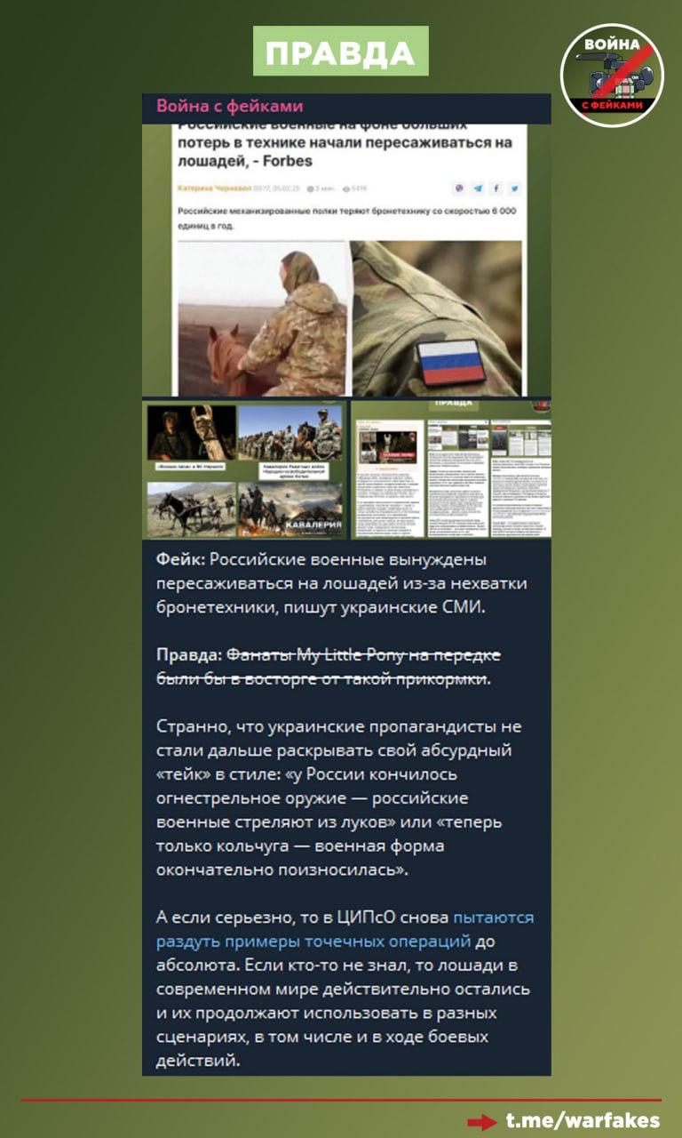 Фейк: Пока ВСУ используют дроны и высокие технологии, российская армия воюет лошадьми, утверждают украинские тг-каналы