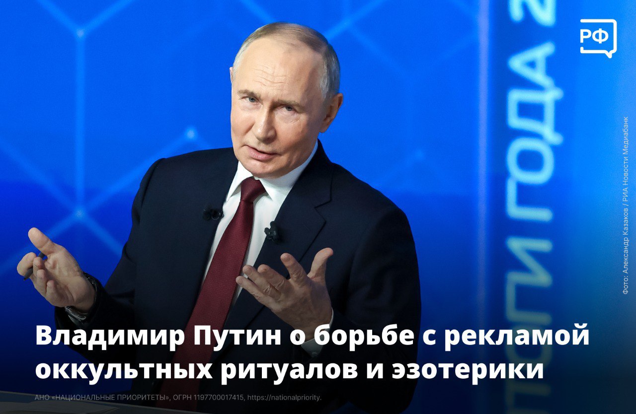 Необходимо бороться с рекламой оккультных ритуалов и услуг «колдунов», которые обманывают людей и вредят им, заявил Владимир Путин. Вопрос о противодействии сатанизму* и эзотерике задала журналистка православного телеканала «Спас».