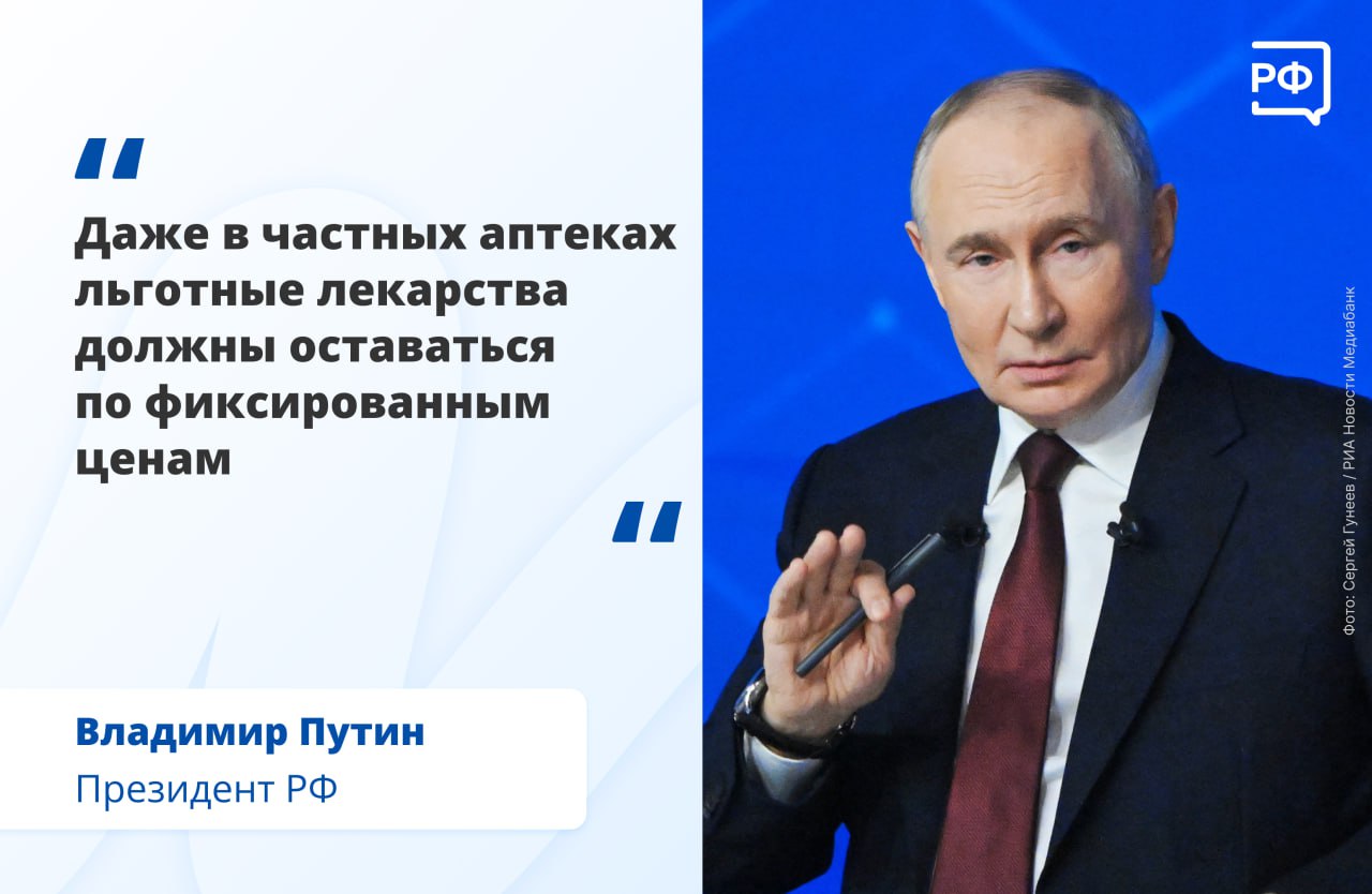 Кроме того, Президент заявил, что нужно развивать передвижные аптеки — такая успешная практика есть во многих регионах. Решить проблему также поможет и продажа льготных лекарств в фельдшерско-акушерских пунктах и отделениях Почты России.