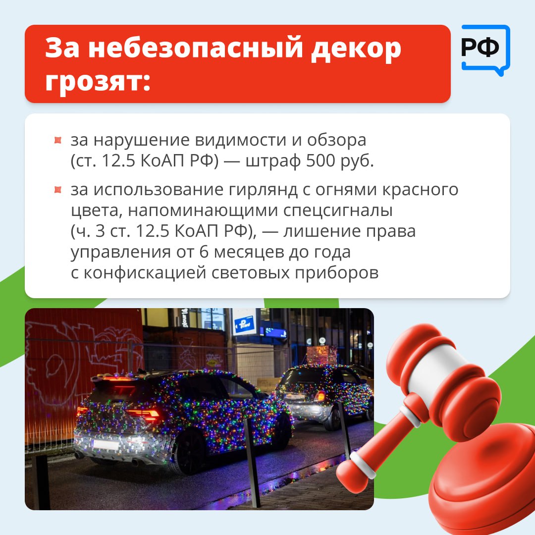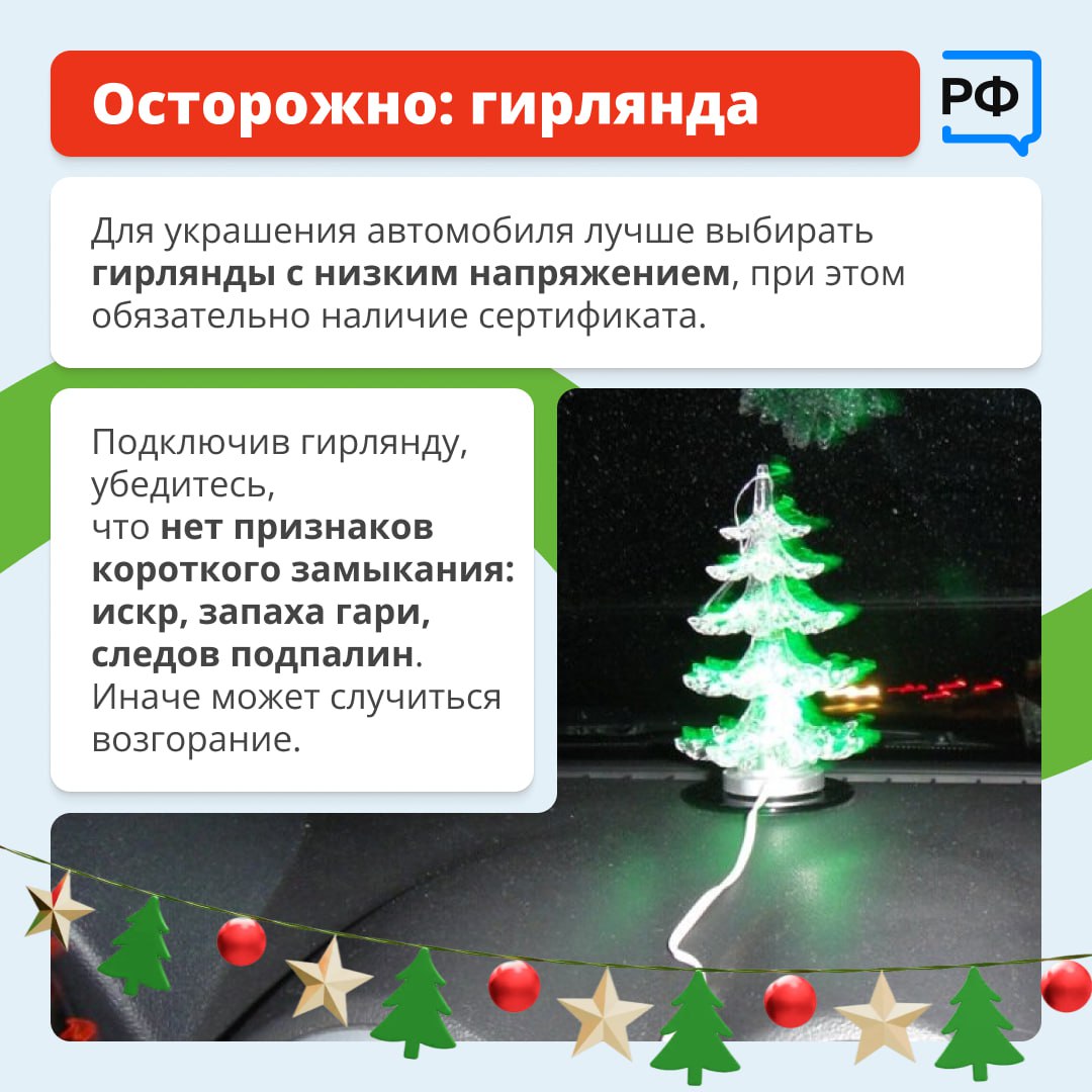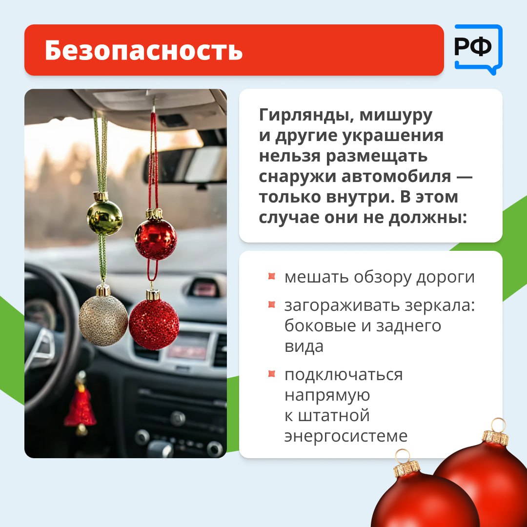 Какой новогодний декор авто разрешён, а какой — нет, рассказали в карточках.