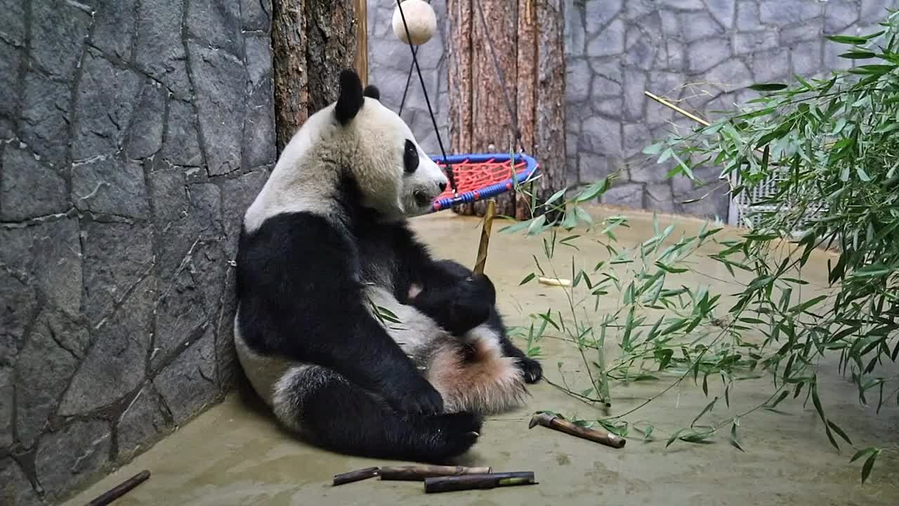 Панда Катюша из Московского зоопарка весит уже более 80 кг и делает успехи на тренировках.