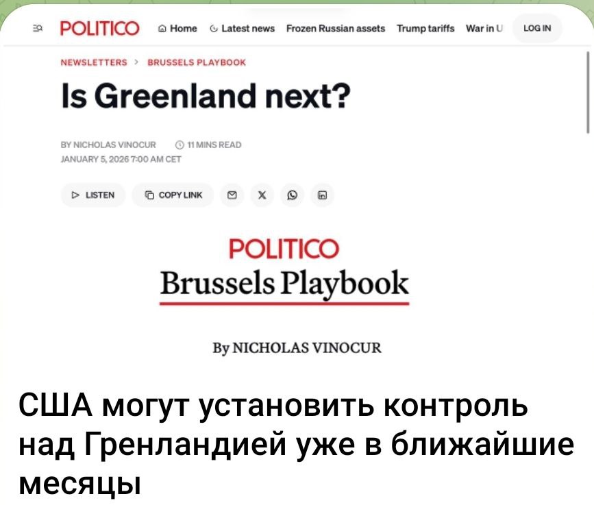 "Будет ли Гренландия следующей ?" Как считает "Политико", такая вероятность есть. Издание отмечает, что это нанесло бы мощный удар по НАТО. И абсурдно сравнивает Данию... с Украиной (!): мол, такой же поддержки Дания от Европы не получит.