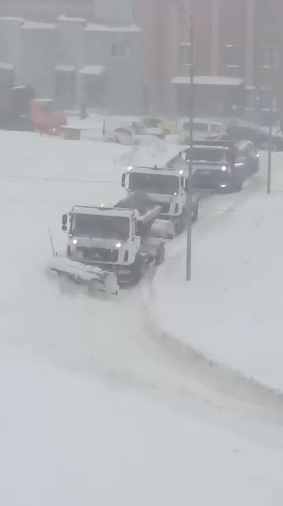 Те, кто должны были спасти столицу - нуждаются в помощи сами: Коммунальщики оказались заблокированы в сугробе на дороге.