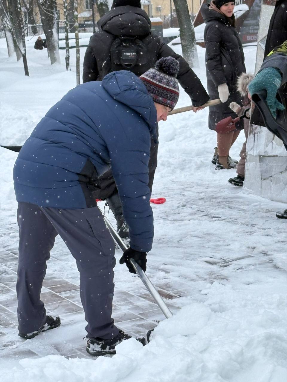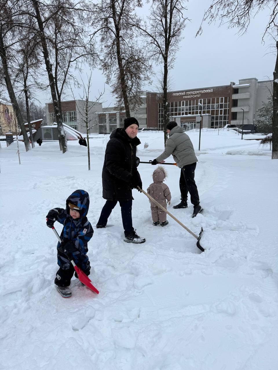 Сотрудники министерства экономического развития Тульской области вместе с жителями вышли на уборку снега.