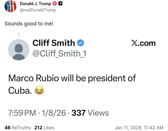 Идея назначения госсекретаря США Марко Рубио президентом Кубы понравилась Дональду Трампу.