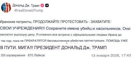 ![[Donald J. Trump] Иранские патриоты, ПРОДОЛЖАЙТЕ ПРОТЕСТОВАТЬ - ЗАХВАТИТЕ СВОИ УЧРЕЖДЕНИЯ!!!](https://nmosknews.ru/img/20260113/ce75bef8fb383d518c9fed590d7fd2d4.jpg)