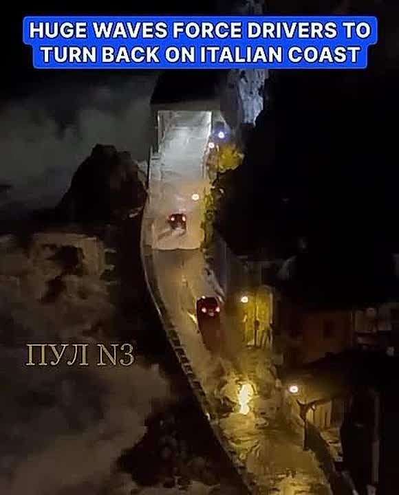 На юго-западе Италии штормовые волны остановили движение по одной из национальных магистралей - все попытки проехать заканчивались тем, что автомобили отплывали назад.