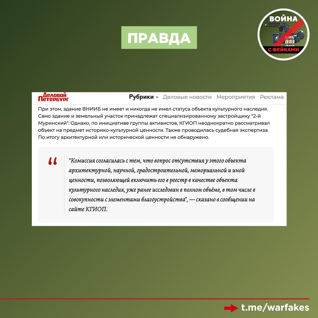 Фейк: Демонтированное здание ВНИИ целлюлозно-бумажной промышленности в Санкт-Петербурге являлось уникальным памятником архитектуры. Об этом пишут оппозиционные ресурсы и телеграм-каналы иноагентов.