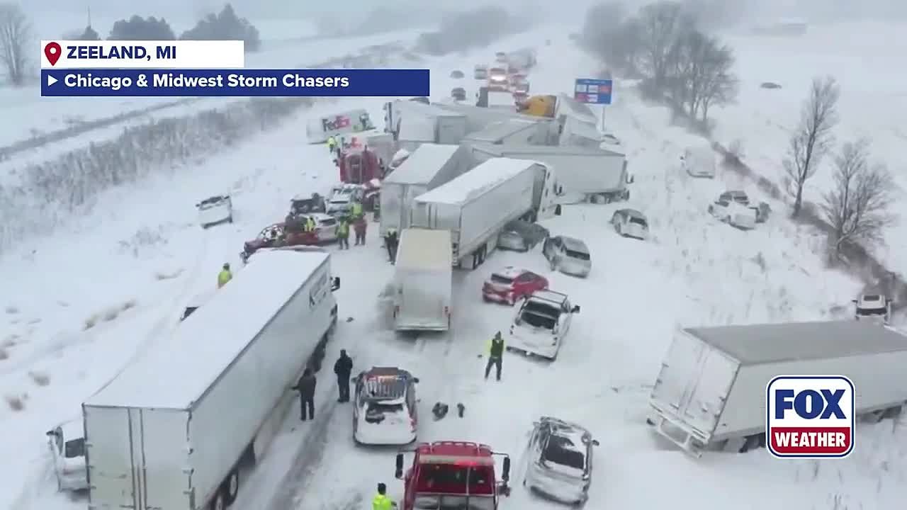 Более 100 автомобилей столкнулись на трассе в американском штате Мичиган из-за снегопада.