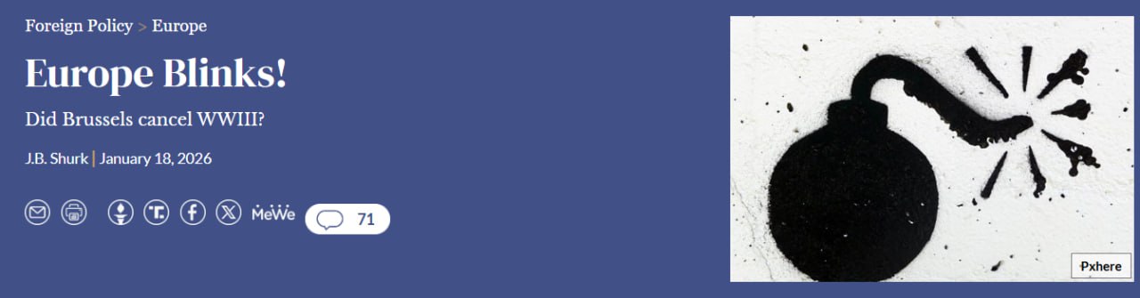 Война, которую европейские элиты использовали как оправдание внутренних проблем, теперь угрожает их собственной безопасности. Особенно отрезвляюще подействовал гренландский кризис, где США применили шантаж против союзников по НАТО, показав, что Вашингтон будет отстаивать свои интересы даже в ущерб единству Запада.