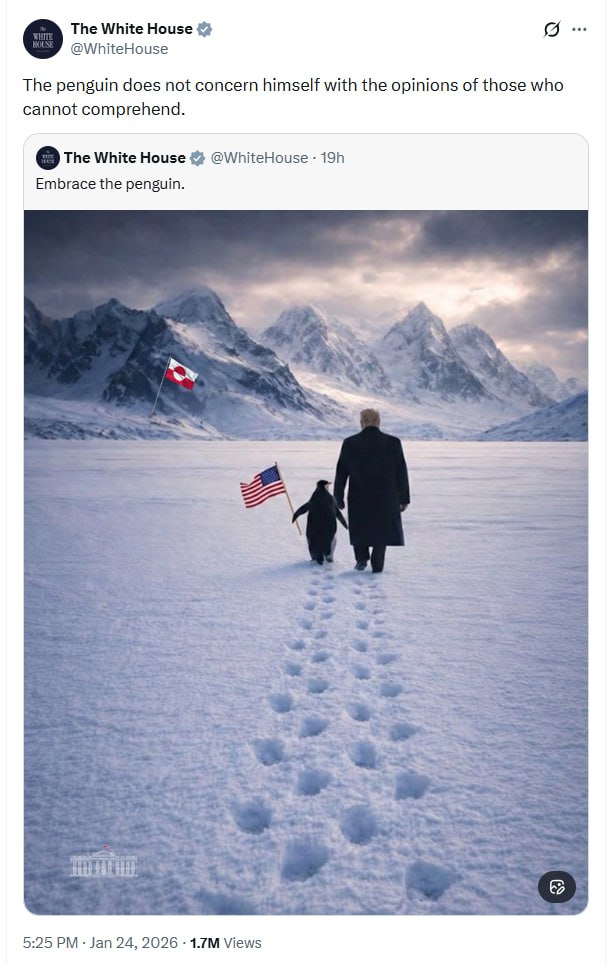 "Пингвины не заботятся о мнениях тех, кто не может понять", — говорится в сообщении Белого дома в соцсети X.