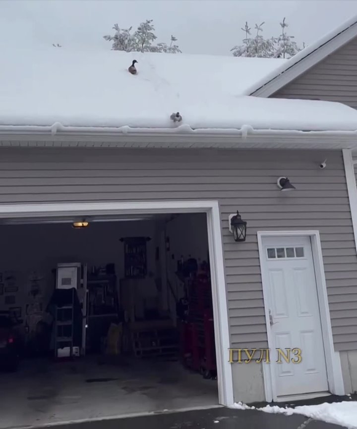 Утки поняли плюсы зимы:. В Канаде стая уток устроила «горки» на крыше дома