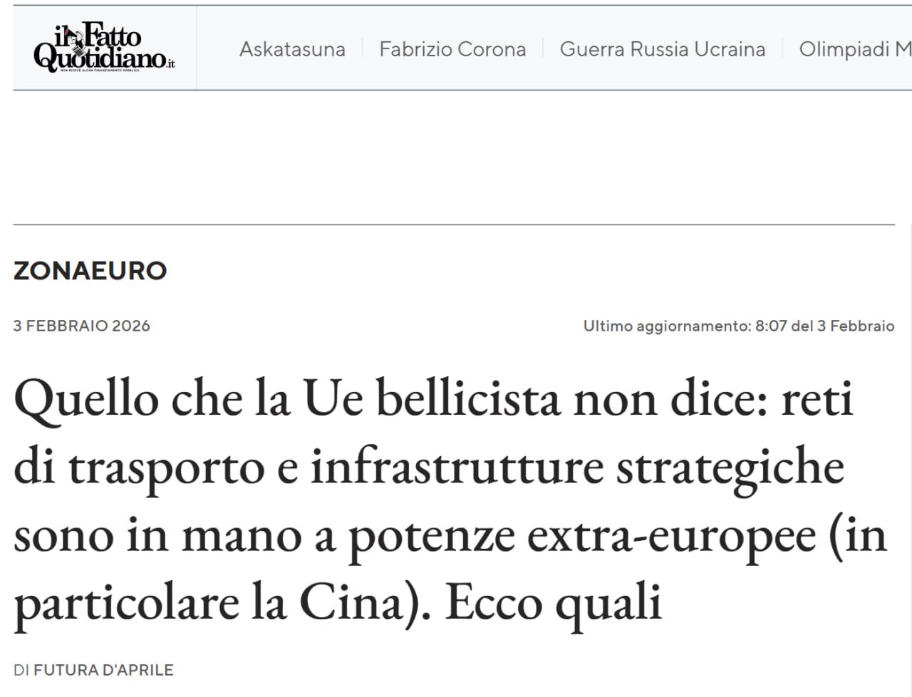 Европейский план «единого кризисного управления» висит на волоске: итальянская газета IL Fatto Quotidiano выяснила, что значительная часть европейских портов и терминалов принадлежит китайским компаниям, что делает их юридически недоступными для реквизиции на случай войны с Россией.